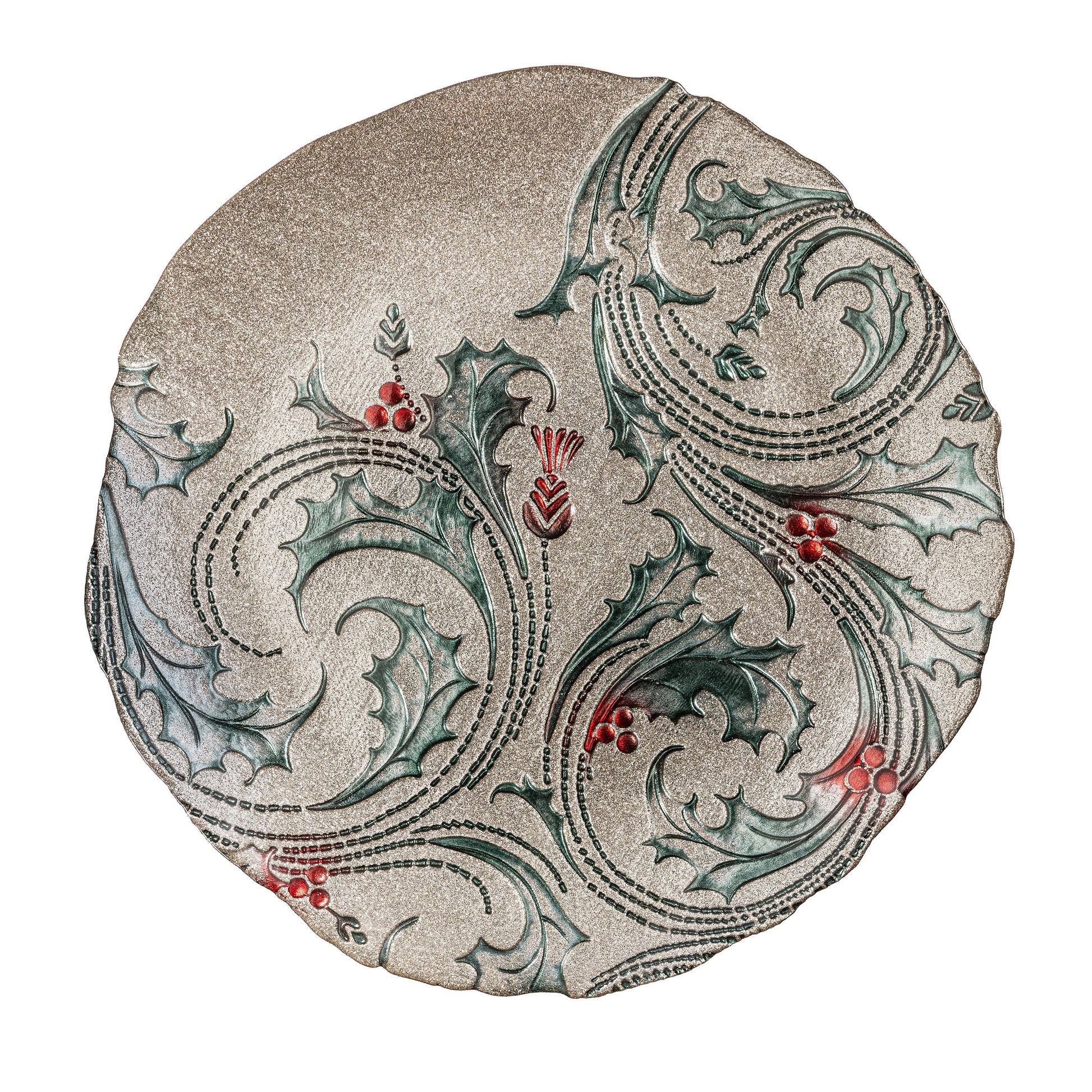 Joyful Traditions Plate Glass Holly Serving Plate, 12.5"