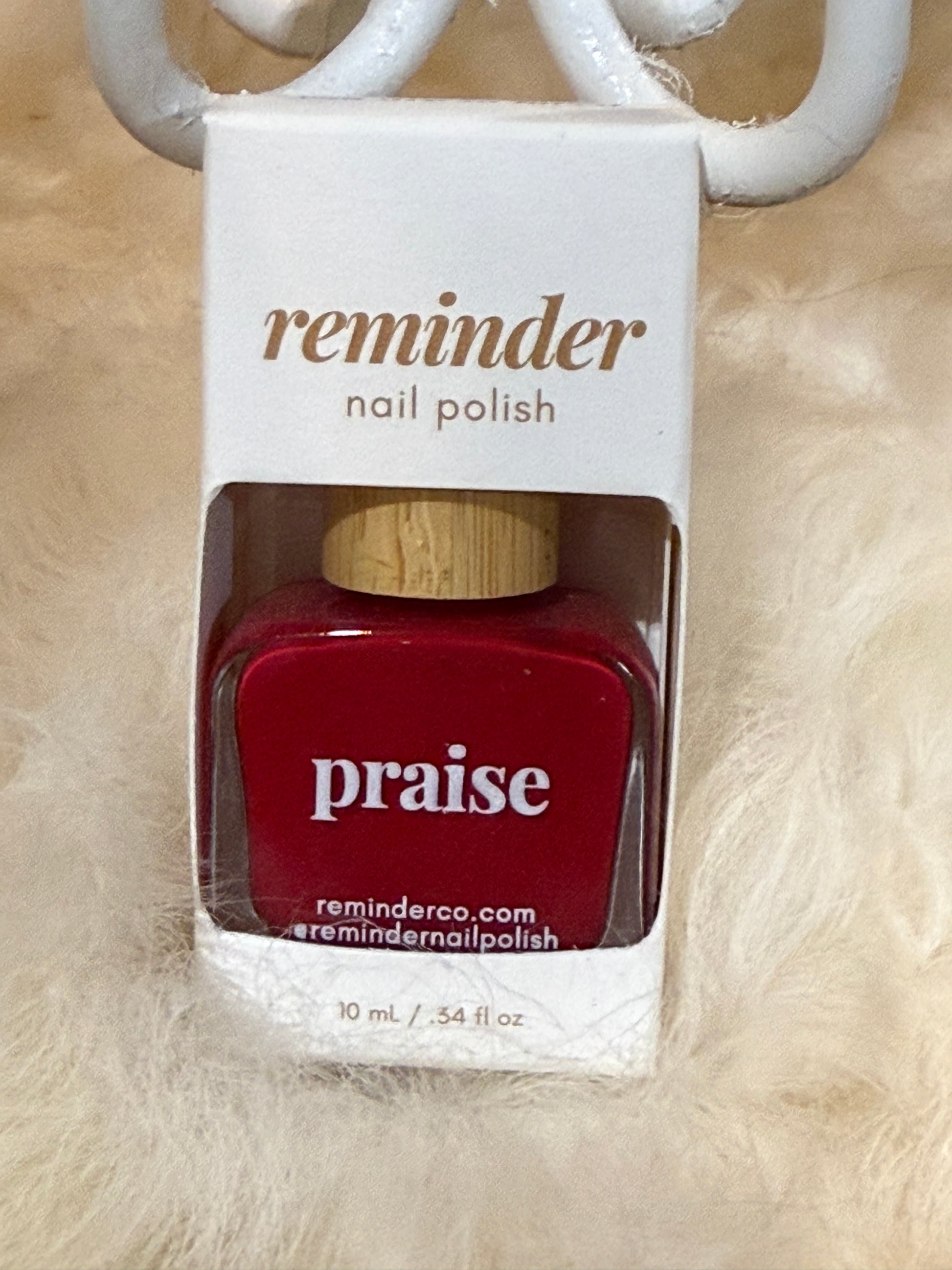 Elevate your manicure with Praise Nail Polish by Reminder—a stunning classic red that transcends trends. This timeless shade delivers sophisticated color that works for any occasion, from everyday elegance to special events. The rich, vibrant formula ensures flawless coverage and a lustrous finish that catches the light beautifully. Whether you're seeking a bold statement or refined polish, Praise offers the perfect balance of confidence and grace. Experience the enduring appeal of a red that never goes out of style.